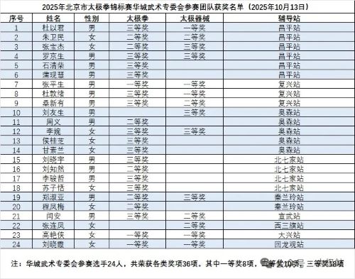 2025北京武术太极拳锦标赛于昨天在奥体中心结束,华城专委会24名队员代表华城拳社参加比赛,